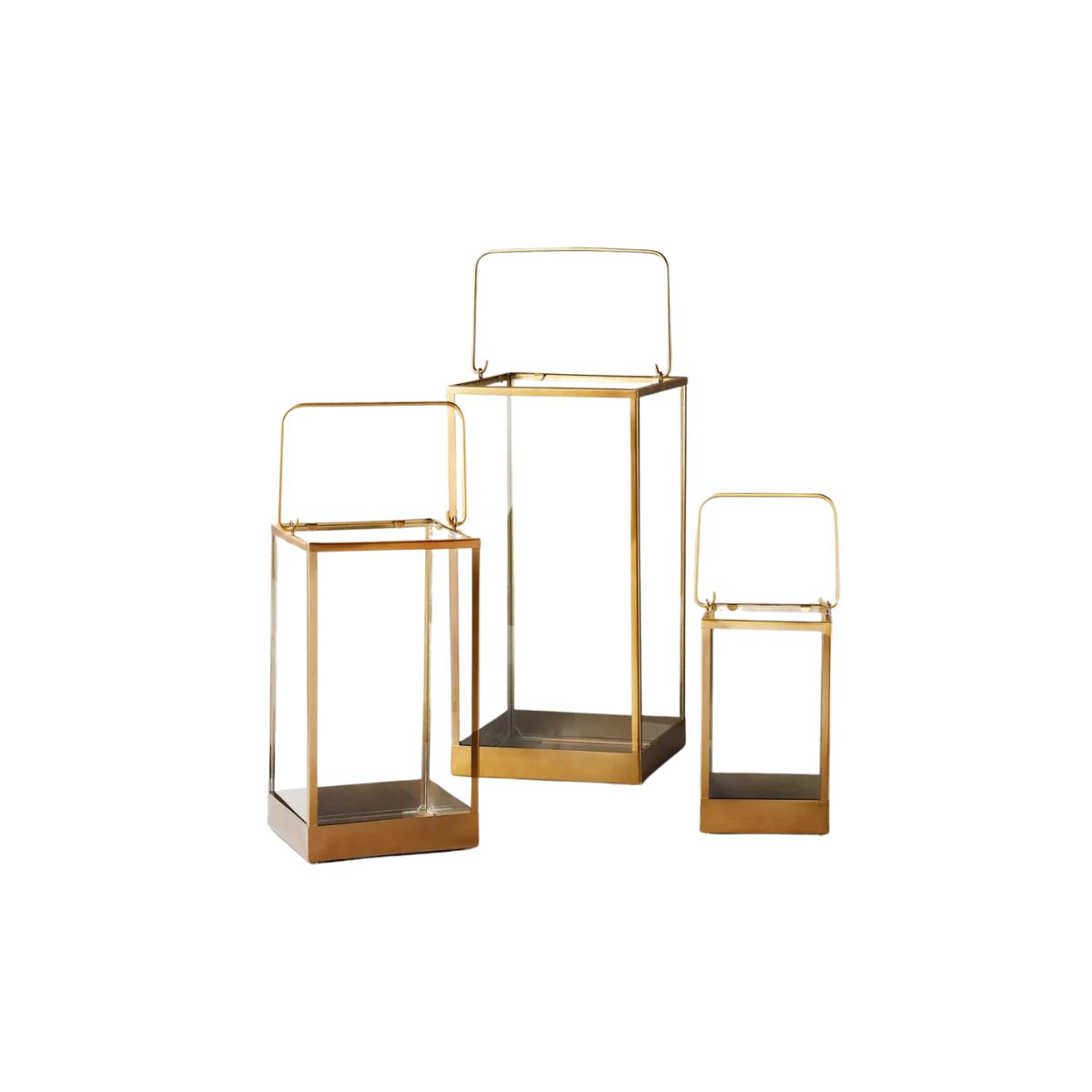 Description: Set of 3 Brushed Gold Lanterns